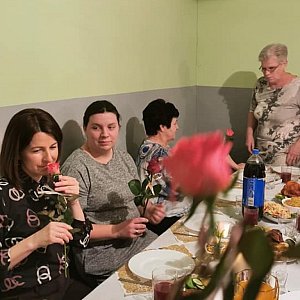 Serdeczne życzenia dla wszystkich pań oraz symboliczne kwiaty wręczył sołtys Zdzisław Przybyła.