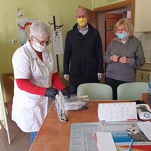 Burmistrz Hubert Gruszczyński wraz z pracownikami rozwiózł je dziś do sklepów oraz ośrodków zdrowia. Są one rozdawane za darmo, a przeznaczone są głównie dla osób o podwyższonym ryzyku zachorowania na COVID-19.