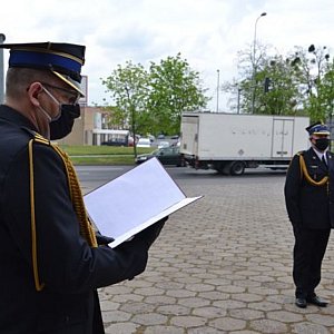 Skromna uroczystość odbyła się w poniedziałek 4 maja na placu przed budynkiem Komendy Powiatowej Państwowej Straży Pożarnej we Wrześni. Z uwagi na bezpieczeństwo ograniczona została do wyczytania nazwisk osób, którym przyznano awanse.