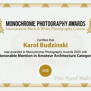 Dzisiaj dostałem miłą wiadomość, że moje prace zostały wyróżnione wśród ponad 7000 zdjęć z całego świata w kategorii „Pejzaż” i „Architektura” w międzynarodowym konkursie fotografii czarno-białej. Zdjęcia te pokazują Pyzdry, klasztor w Lądzie oraz schody w poznańskim Okrąglaku. Cieszy mnie to tym bardziej, gdyż bardzo podobne zdjęcie Pyzdr umieszczono na okładce kalendarza tego miasta - czytamy na profilu Facebooka Karola Budzińskiego.