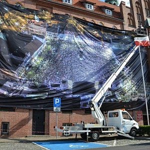 Jeszcze jedno pytanie co dalej z tą potężną płachtą gdzie to umieszczą aby dalej ptomować hałaśliwe koncerty w rynku, a może tylko wyląduje w koszu.