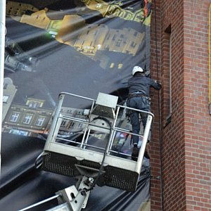 Ogromny baner przesłaniający praktycznie całą ścianę budynku? Czy może ten monumentalny pokaz nieliczenia się z kasą?