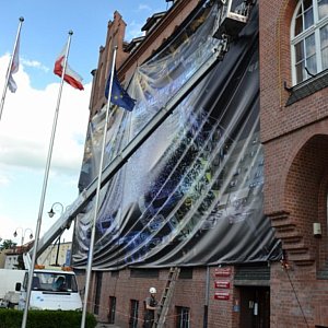 Taaa, szereg "dobrych pytań" pojawiło się tutaj... Z pewnością warto policzyć ile na to wszystko wydano kasy (sam baner, usługi montażu i demontażu, wcześniej ktoś musiał wykonać zdjęcia z powietrza, no i przez prawie miesiąc kilkanaście okien budynku było zaciemnionych powodując z pewnością większe zużycie prądu...), bo to przecież kasa wspólna, nasza - wrzesińska. Jeśli pan burmistrz sam zapłacił, to nie mam pytań - jego kasa i jemu powinno się wręczyć mandat za łamanie prawa...