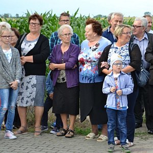 Krótko potem odbyła się msza święta. Nabożeństwo odprawił proboszcz czeszewskiej parafii ks. Mirosław Stawicki. Tuż po zakończeniu mszy świętej mocno rozpadał się deszcz. Mieszkańcy nie rozeszli się jednak do domów. I jak się okazało słusznie, bo po kilkunastu minutach przestało padać. Przybyli mogli spróbować zupy gulaszowej i wielkiego tortu. A ten był nie byle jaki, bo bardzo duży. Palce lizać! Pyszności starczyło dla wszystkich. Tort upiekła miejscowa ciastkarnia Sara.
