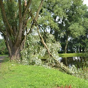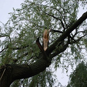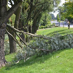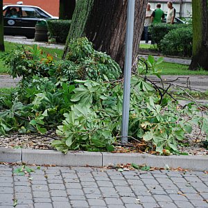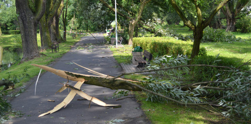 Burze, które przeszły nad Wrześnią w nocy z wtorku na środę pozostawiły po sobie złamane konary i złamane drzewa. Najwięcej spustoszeń było w obu parkach. Pokaźny konar uszkodził nowo powstającą halę przy SSP nr 2.