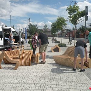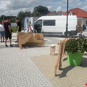 Po kilku miesiącach projektowania, paru przymiarkach w końcu jest. Innowacyjna ławeczka zdobi rynek w Nekli.