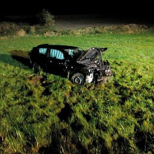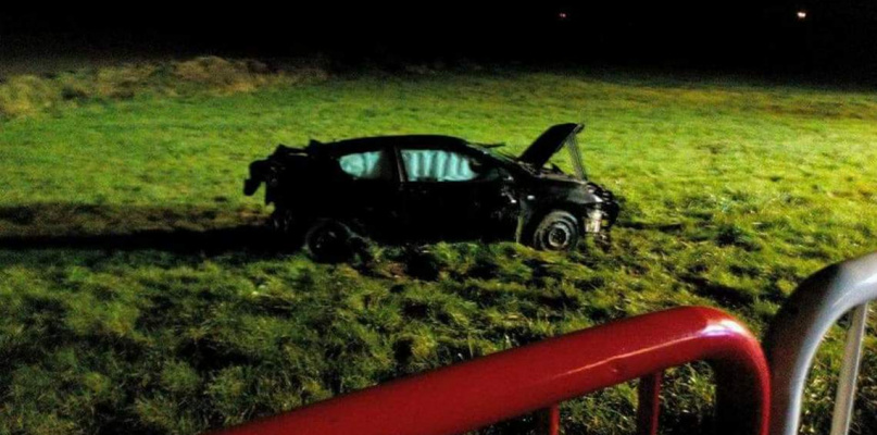 Kierowca samochodu osobowego na łuku drogi w kierunku Węgierek podczas wyprzedzania stracił panowanie nad autem, dachował, a następnie wylądował na łące.
