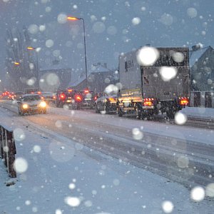 Śnieg zaczął padać już po 15.00. Na ulicach Wrześni zapanował paraliż komunikacyjny. Największe korki tworzyły się na Szkolnej i Paderewskiego.