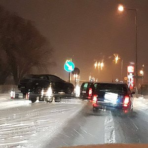 Opady śniegu późnym wieczorem przeszły w deszcz ze śniegiem. Padać i silnie wiać może jeszcze przez całą noc. Bądźcie ostrożni - śnieg się roztapia,droga i na chodnikach jest ślisko.