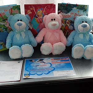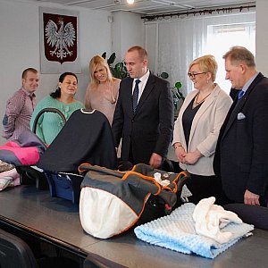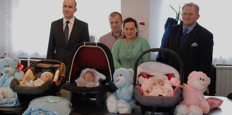 Starosta oraz burmistrz osobiście pogratulowali potrójnego szczęścia i przekazali dzieciom finansowe wsparcie oraz upominki.