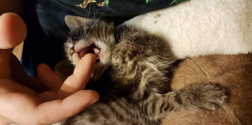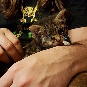 Kociak został przyniesiony do lecznicy dla zwierząt przy ul. Objazdowej 21. Jego oka nie udało się uratować, ale poza tym zwierzakowi nic nie dolega, a niepełnosprawność w niczym mu nie przeszkadza. Skończył przyjmować antybiotyk i skupia się na zabawie i poznawaniu otoczenia.