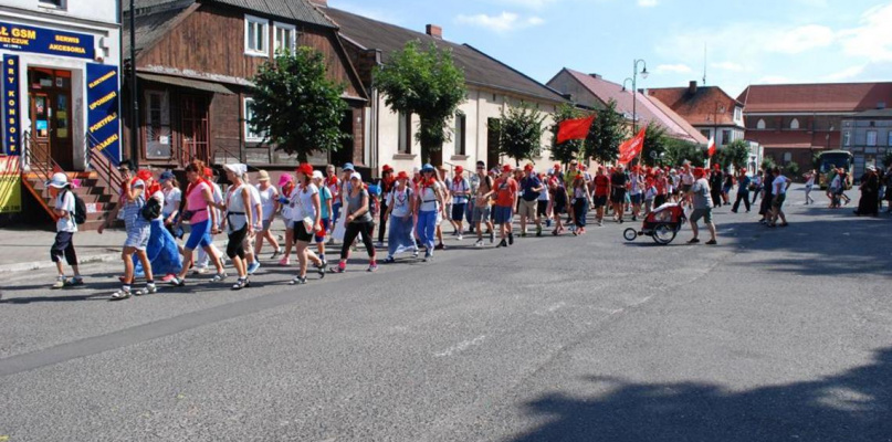 Nie widać tłumów Przyzdrzan żegnających pielgrzymów.Pewnie było mało na powitaniu.Skończyła się gościnność.