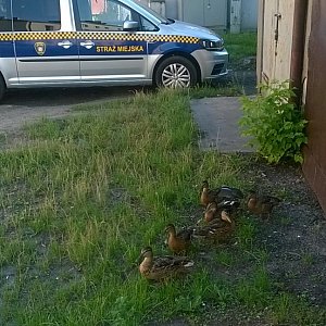 Kaczki maszerowały sobie spokojnie ul. Szkolną. Strażnicy wezwali do pomocy pracownika schroniska - Ireneusza Zawala, który profesjonalnie odłowił ptasią rodzinkę. Kaczki przetransportowano nad zalew Lipówka, gdzie zostały wypuszczone.