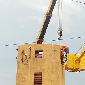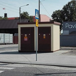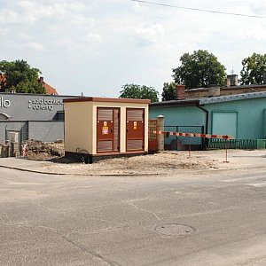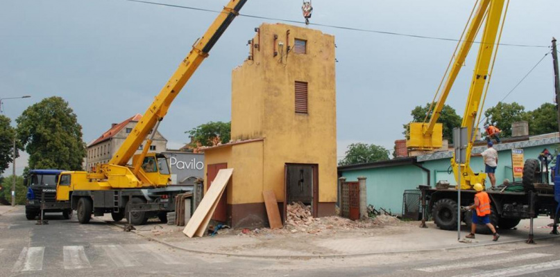 Wyburzono stary obiekt stacji transformatorowej na skrzyżowaniu ulic Kaliskiej i Szkolnej.