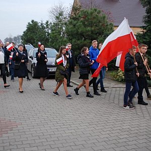 Główne uroczystości gminne, w których uczestniczyła wójt Teresa Waszak rozpoczęły się mszą św. w intencji ojczyzny w kościele parafialnym w Sokolnikach. Następnie wszyscy uczestnicy przeszli do miejscowej szkoły, gdzie wspólnym śpiewaniem pieśni patriotycznych uczniowie uczcili 100-lecie odzyskania niepodległości przez Polskę.