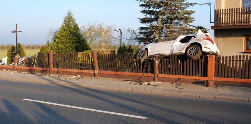 Samochód osobowy wleciał na posesję w Ratajach