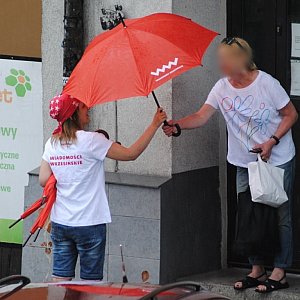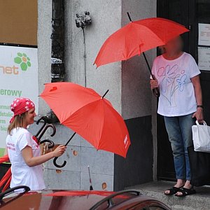 Nasza redakcyjna koleżanka nie zważając na deszcz obdarowała kilka osób parasolami „WW”. Pomysł został przyjęty naprawdę ciepło, choć z pewnym zaskoczeniem.