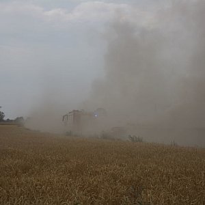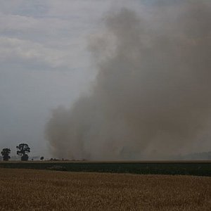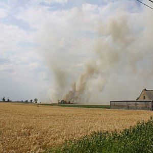 Nad okolicą pojawiły się słup dymu, a woń spalonego zboża czuć nawet w centrum Wrześni.