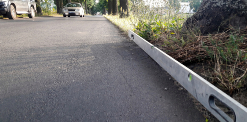 autor zdjęcia z poziomicą uzupełni album o fotki z poziomicą w poprzek drogi, i z poziomicą na poboczu, gdzie drzew nie ma, może pokaże dziury w drodze, które dla ciężarówek znaczenia nie mają, ale dla rowerzystów i owszem ;) itd. A może i filmik z punktu widzenia pieszego idącego tą drogą lub z kasku rowerzysty. Byłoby znacznie ciekawiej :)