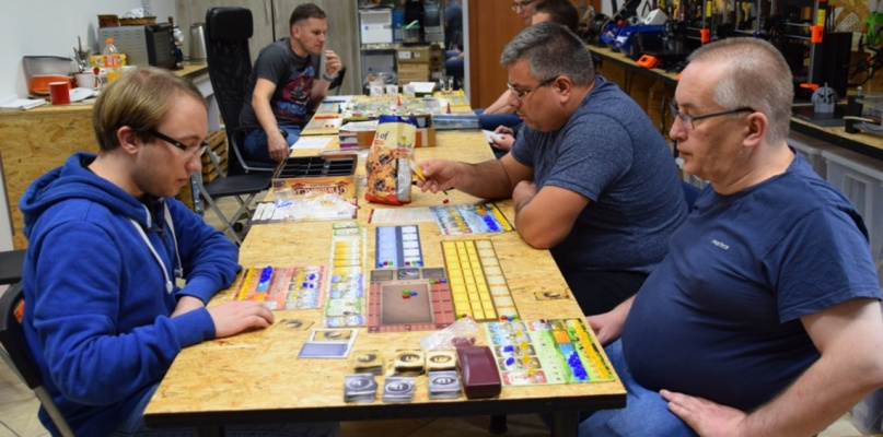 Sobotnie późne popołudnie przy Mickiewicza. Około 18.00 przychodzą pierwsi gracze, obładowani torbami pełnymi pudełek. Jest Przemek z dwoma nastoletnimi synami – Wojtkiem i Mikołajem. Jest Krystian, który kiedyś prowadził zajęcia dla miłośników planszówek w harcerstwie. Marek, który dziś objaśnia mechanikę gry. I Piotr – mój dzisiejszy przewodnik. To tylko część ich klubu, który ma już status stowarzyszenia. Zazwyczaj na spotkaniach pojawia się od 4 do 10 osób. Z Wrześni, Środy Wielkopolskiej, czasem przyjedzie ktoś z Poznania. Łączy ich pasja. O grach planszowych mogą opowiadać godzinami. Grać w nie – jeszcze dłużej.