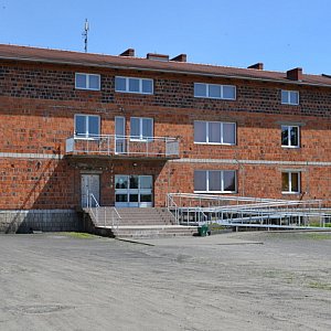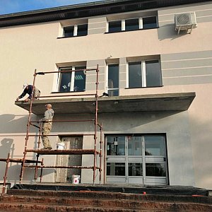 Na „nowej” części urzędu trwają prace wykończeniowe Obecnie robiony jest łącznikNowa elewacja urzędu prezentuje się bardzo ładnieDo zakończenia prac zostało już niewieleW planach jest również wymiana drzwi wejściowych Jeszcze do niedawna tak prezentował się urząd gminy Urząd gminy ze starą elewacją z lotu ptaka. Burmistrz zapowiada, że po zakończeniu inwestycji zleci wykonanie podobnego zdjęciaStare wejście do urzędu gminy. Na szczęście takie schody się już przeszłościąTaki widok urzędu należy już do przeszłości