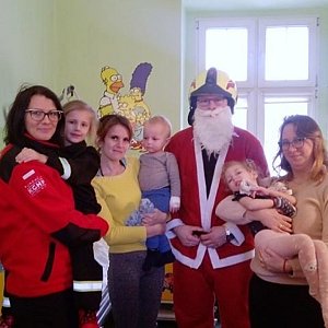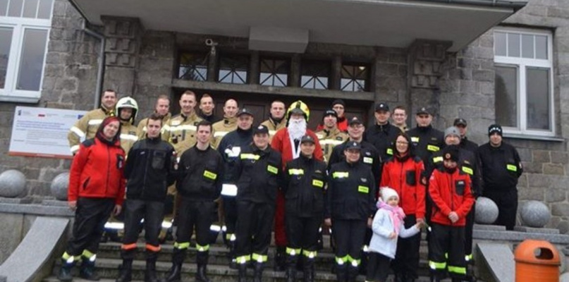 Święty Mikołaj wraz z swoimi pomocnikami wręczył dzieciom paczki z finału akcji „Paczka dla dzieciaka na święta od Strażaka”.