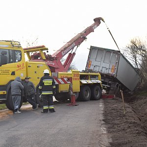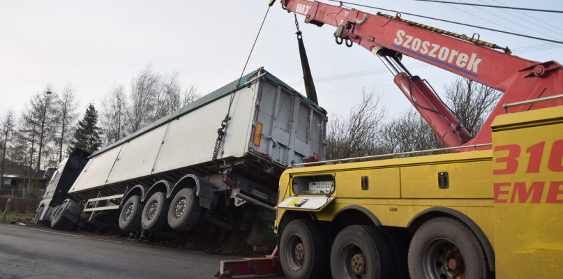 Prawdopodobną przyczyną wypadku tira była pęknięta opona. Obecnie trwa wyciąganie pojazdu z rowu. Z tego powodu droga wojewódzka jest zablokowana. Policja zorganizowała objazdy.