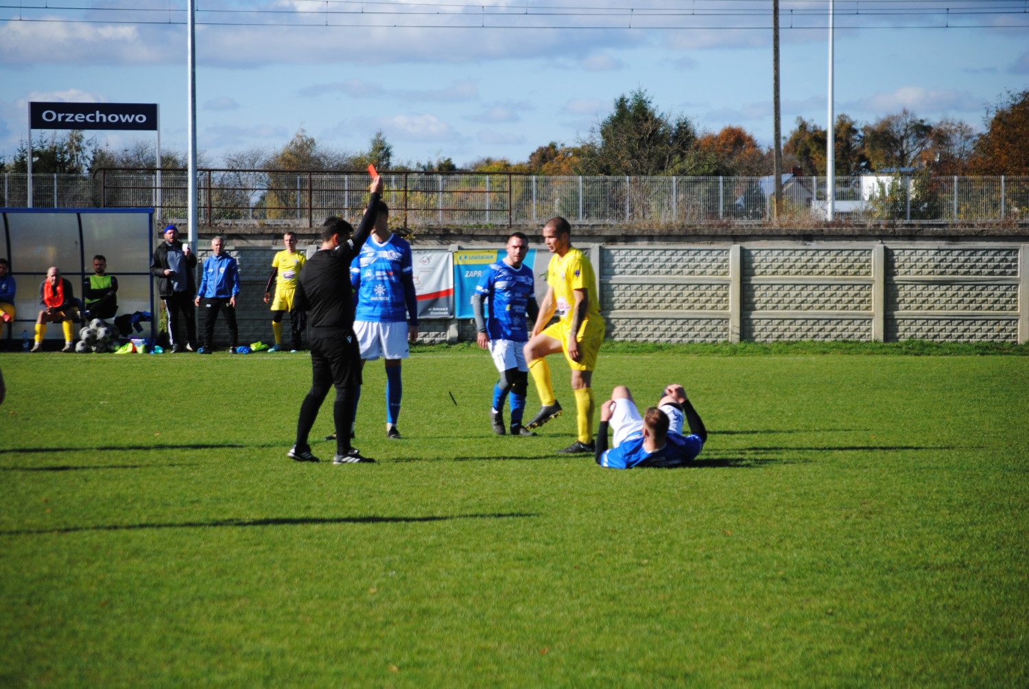Neklanie znaleźli się w sporych opałach. Gracze z Orzechowa nacierali na ich bramkę ze zdwojoną siłą. Kolejna kontra mogła przynieść gola Płomieniowi, ale Mateusz Chojnacki pomylił się przy próbie lobowania bramkarza gospodarzy. W 76. min drugą żółtą kartką ukarany został Paweł Wiśniewski. Od tego momentu orzechowianie grali w przewadze jednego zawodnika.