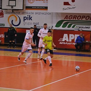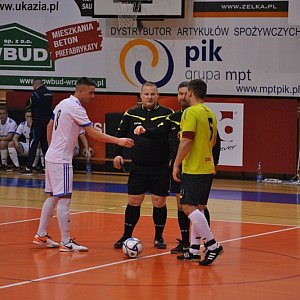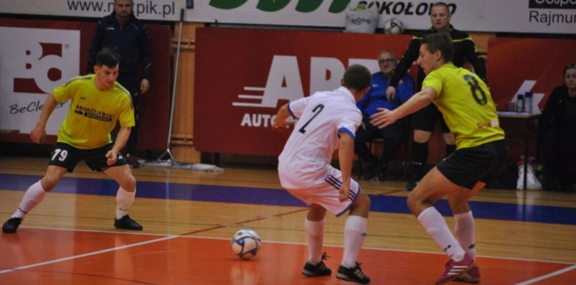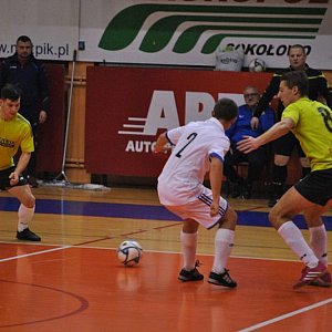 Najbardziej oczekiwany pierwszoligowy pojedynek wieczoru dostarczył sporo emocji. Mecz okazał się ciekawy i bardzo wyrównany. W pierwszej połowie spotkania lepsze okazje strzeleckie wypracowali sobie zawodnicy Materiałów Budowlanych Andrzejewski. W 10. min po strzale Jakuba Michalaka piłka trafiła w słupek bramki Master Sport, a chwilę później Damian Garbaciak okazał się nieco spóźniony, aby umieścić futbolówkę w pustej bramce. W 15. min po trafieniu Pavlo Iarmoliuka Materiały Budowlane Andrzejewski objęły prowadzenie. Dwie minuty później trafieniem do pustej bramki, po podaniu Filipa Janiszewskiego, do wyrównania doprowadził Bartłomiej Figas.