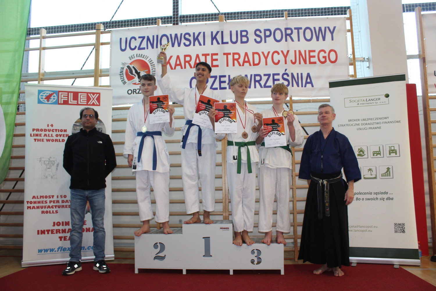 XXII Ogólnopolski Turniej w Karate Tradycyjnym Dzieci i Młodzieży zorganizowany został 18 października w hali sportowej SSP nr 3 we Wrześni. Podczas zawodów reprezentanci Uczniowskiego Klubu Sportowego Karate Tradycyjnego „Orzeł” zdobyli łącznie 26 medali – 5 złotych, 10 srebrnych i 11 brązowych. Złoto w kata wywalczył Antoni Nolka i Bartosz Kałużny, a w kumite Uddhav Sharma, Jakub Dermiago i Dominik Buziak. Srebrny medal w kata zdobyła Wiktoria Szymańska, Michalina Kaczor, Amelia Dermiago, Aniela Mokracka oraz Kamil Sobczak, Nikodem Orzechowski i Uddhav Sharma. W kihon Marcel Majka, a w kumite Mateusz Dominik i Ewelina Dermiago. Brązowe krążki w kata przypadły natomiast w udziale Leo Grzelakowi, Dominikowi Buziak, Katarzynie Kałużnej, Michałowi Dermiago, Barbarze Petrovskiej, Tobiaszowi Borowiakowi, Sahajowi Munjal, Ewelinie Dermiago, Jakubowi Dermiago i Lenie Buziak, a w kumite Wiktorii Szymańskiej.