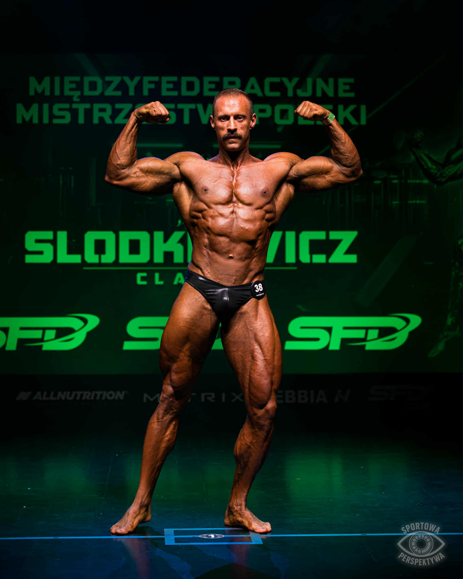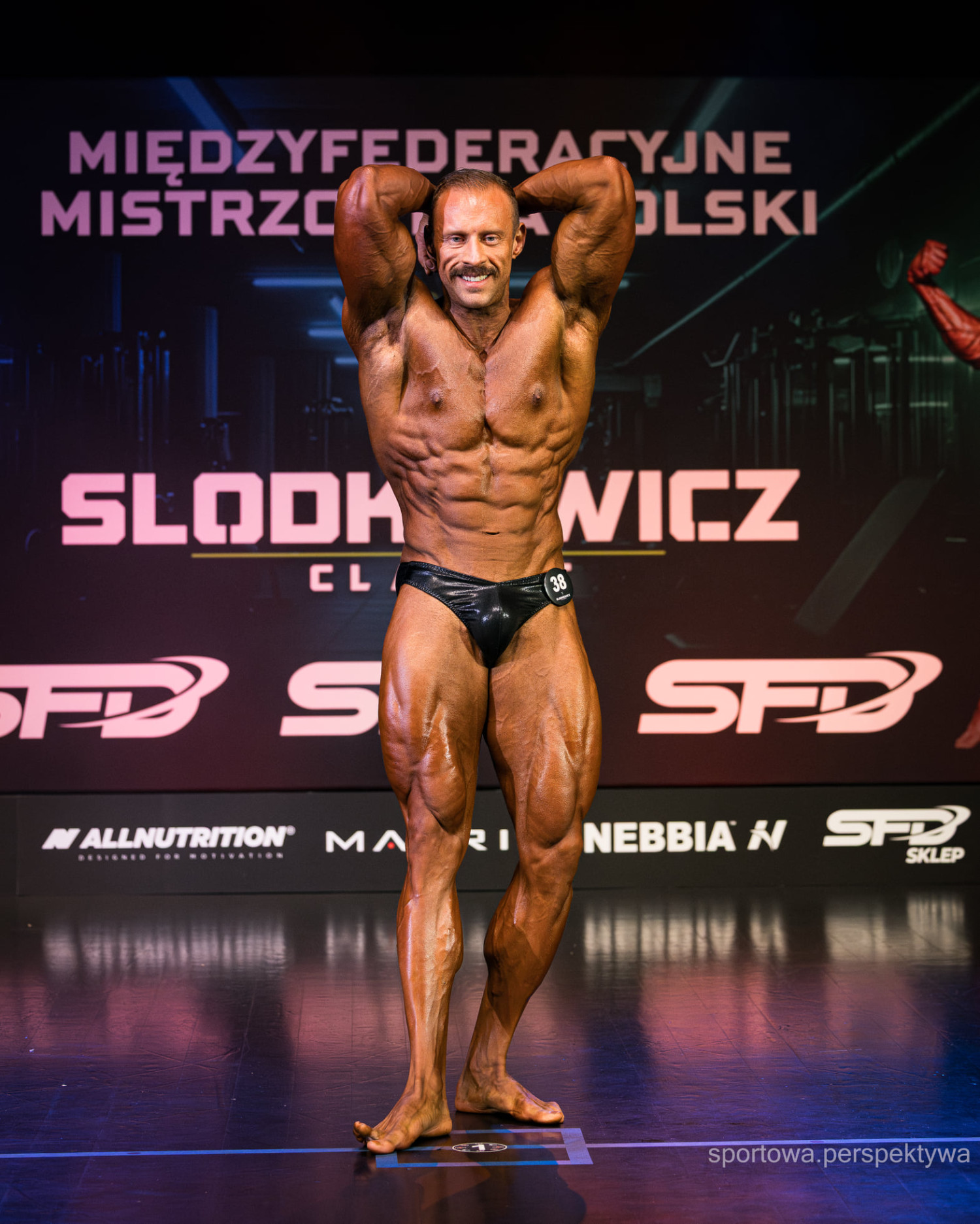 – W mens physique, zawodach spodenkowych, startowałem w różnych kategoriach. Największym osiągnięciem było zdobycie w jednej z nich tytułu wicemistrza Polski. W październiku 2025 roku startowałem w trzech edycjach zawodów. Pierwsza z nich odbyła się 4–5 października w Nadarzynie na Targach Fiwe. Były to zawody NPC Worldwide Festiwal Dwudziesta Ósma Edycja. Tam w kategorii Men's Classic Physique Beginner D zdobyłem tytuł mistrza Polski. W Men's Classic Physique Masters 35+ byłem wicemistrzem, a w Men's Classic Physique Open Class D zająłem trzecie miejsce. Tydzień później, 11–12 października, w Markach brałem udział w NPC Worldwide Festiwal Dwudziesta Dziewiąta Edycja. Tam startowali zawodnicy nie tylko z Polski, ale i z Europy, w tym ci, których obserwowałem w mediach społecznościowych i wiedziałem, że są najlepsi, ale chciałem się z nimi zmierzyć. To były najlepiej obsadzone zawody w Europie od ośmiu lat. Ogólnie we wszystkich kategoriach startowało ponad tysiąc zawodników. Jako ciekawostkę podam, że mój start w kategorii spodenkowej zakończył się o 2.30 w nocy. Potem 18 października wystąpiłem ponownie w Markach w Słodkiewicz Clasicc. Były to zawody międzyfederacyjne, w których mogą startować zawodnicy z wszystkich kategorii i federacji w Polsce. Tam w dwóch kategoriach, w których brałem udział, zająłem drugie i czwarte miejsce. Chciałem jeszcze przedłużyć swoje przygotowanie startowe i wziąć udział w zawodach w Pradze, jednak po czterech tygodniach utrzymywania diety i odwadniania się okazało się, że nie jestem już w stanie przedłużyć tego czasu.
