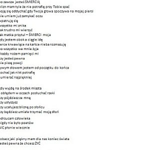 – Miliard odpowiedzi. Pisze się, żeby z siebie wyrzucić emocje – pozytywne, negatywne. Na pewno też z prostej ludzkiej potrzeby, by się dzielić, bo każdy pragnie w życiu miłości, szczęścia i zrozumienia. Wielu ludzi mówi, że trzeba coś po sobie zostawić. Ale ja chcę za życia jeszcze krzyczeć: „Patrz, ja tak widzę, tak czuję. Może tobie tym pomogę? Może mnie poznasz?”. A poza tym to jest dla mnie jak oddychanie. A po co oddycham? Żeby żyć.