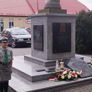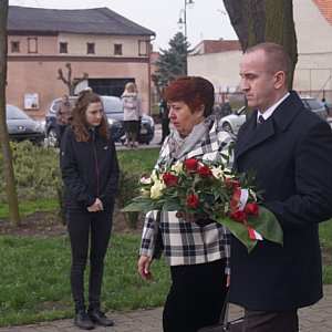 Po mszy świętej, Burmistrz Przemysław Dębski wraz z przewodniczącą rady miejskiej Elżbietą Klossowską złożyli kwiaty pod tablicą upamiętniającą zbrodnię katyńską, a następnie zapalili znicze przed Dębami Pamięci na Placu Sikorskiego.