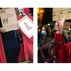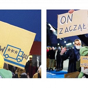 Najlepszy był lajf na RW. Pan Marek ledwo tylko wypowiedział "Jebać komuchów" a już dostał w ucho megafonem od pani prowadzącej. I odrazu poszła kontra że nie ujawnia swojego nazwiska. Ale jak się krzyczy "Jebać PiS" to już nie trzeba się przedstawiać. He he. Na koniec piesek dostał też z megafonu po uszach a pan Marek dostał gromkie "Wypierdalaj"... Ach te kobiety, dla których pisze się wiersze - jak głosi jeden z transparentów. Fajne focie. Net na szczęście ma to do siebie, że jak coś wrzucisz to już tak trwale nie usuniesz (jak ciąży). Zobaczymy jakie będzie przyszłych pokoleń baczenie na te zdjęcia. ;) kobit wrzesińskich ;-)