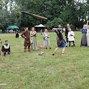 Grzybowski turniej to także spotkanie ze zwierzętami, które na co dzień towarzyszyły naszym przodkom. Ogromne zainteresowanie wzbudził pokaz konny przygotowany przez Bractwo Rycerskie Jastrzębiec z Gniezna. Zaprezentowano efektowne akrobacje, które miały zastosowanie w czasie walki. Rekonstruktorzy przeprowadzili też krótkie warsztaty wskakiwania na konia.