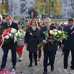Kwiaty pod pomnikiem złożyli liczni samorządowcy, funkcjonariusze służb mundurowych, przedstawiciele różnych organizacji i instytucji, uczniowie oraz kibice. Ratusz reprezentowali: p.o. burmistrza Artur Mokracki, wiceburmistrz Karol Nowak oraz prezydium rady miejskiej. Z ramienia powiatu przybyli: starosta Dionizy Jaśniewicz, wicestarosta Waldemar Grzegorek oraz członek zarządu powiatu Stefan Tomczak.