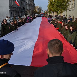 Po mszy setki uczestników przeszły w uroczystym pochodzie pod pomnik 68. Pułku Piechoty. Harcerze z Hufca ZHP Wrzos tradycyjnie nieśli ogromną flagę. Spotkanie pod pomnikiem prowadził Szymon Adamczyk z wrzesińskiego muzeum regionalnego.