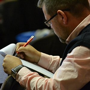 Gdy jurorzy sprawdzali prace, odbyło się spotkanie z Jerzym Bralczykiem i Andrzejem Markowskim. Profesorowie kolejny raz dowiedli, że rozmowa o polszczyźnie może być doskonałą zabawą.