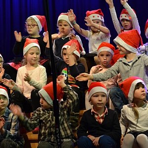 Wspaniale wypadły także dzieci z przedszkola "Mali przyrodnicy", które zaśpiewały kilka rozgrzewających pastorałek i piosenek świątecznych, m.in. "Świeć, gwiazdeczko, świeć" Arki Noego.