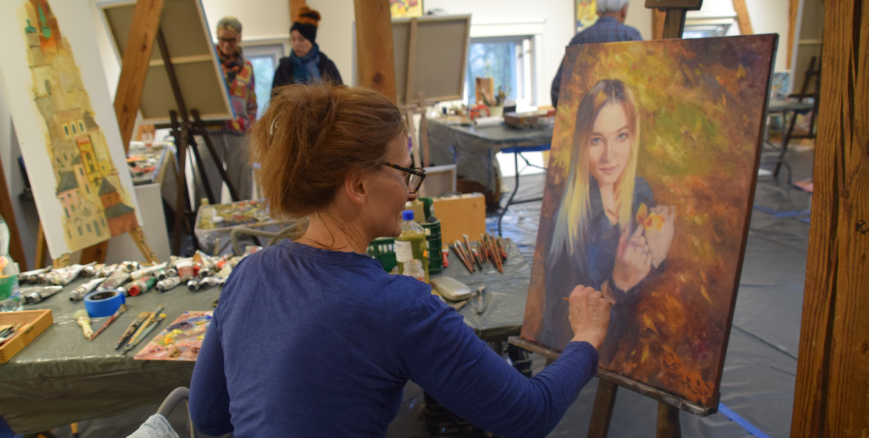 – Atmosfera jest bardzo dobra. Duża w tym zasługa doboru osób. Przyjeżdżają tu ludzie, którzy podobnie podchodzą do pracy plenerowej. Nie przywożą gotowców w bagażnikach, żeby sobie tylko miło spędzić czas, ale uczciwie pracują. Spędzamy dziennie około 10 godzin przy sztalugach. Podczas pleneru doradzamy sobie, wymieniamy się uwagami. To bardzo ważne, bo najgroźniejsze dla artysty jest odizolowanie się od innych, taka sytuacja, że kończę akademię i zamykam się w czterech ścianach swojej pracowni. Konfrontacja, także krytyka są bardzo potrzebne, zresztą nie tylko w naszym zawodzie – podkreśla pani Natalia.
