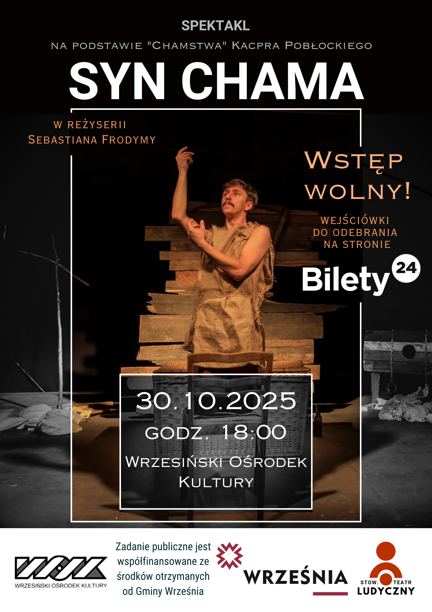 Historia Polski to nie tylko bitwy, podboje czy wojny. To nie tylko opowieści o miastach, zamkach i grodach. Około 90 procent społeczeństwa Rzeczpospolitej stanowili chłopi, zniewolona grupa rodzima, niewolnicy, których „pan" miał prawo krzywdzić. Zamiast Słońca widzieli kij i bat nad głową, ich plecy dziwiły się, że nie pękną, ale kto trzymał bat? "Syn Chama" to refleksja nad tym, czym była niegdyś tradycja i jakie jej skutki odczuwamy do dziś. Jaki charakter miała relacja pan – ojciec – syn? Skąd pochodzi narodowy alkoholizm? Monodram porusza temat traum międzypokoleniowych, a także stanowi lekcję na temat – mało znanej – historii Polski - czytamy w zapowiedzi.