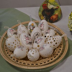 Przedmioty zaprezentowane na wystawie zachwycają kolorami i wzorami. Najwięcej jest wydmuszek z gęsich jaj ozdobionych różnymi technikami – od wycinanek, po decoupage.