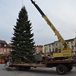 Choinka świąteczna pojawiła się już na wrzesińskim rynku. Jej uroczyste rozświetlenie odbędzie się w czwartek 6 grudnia.