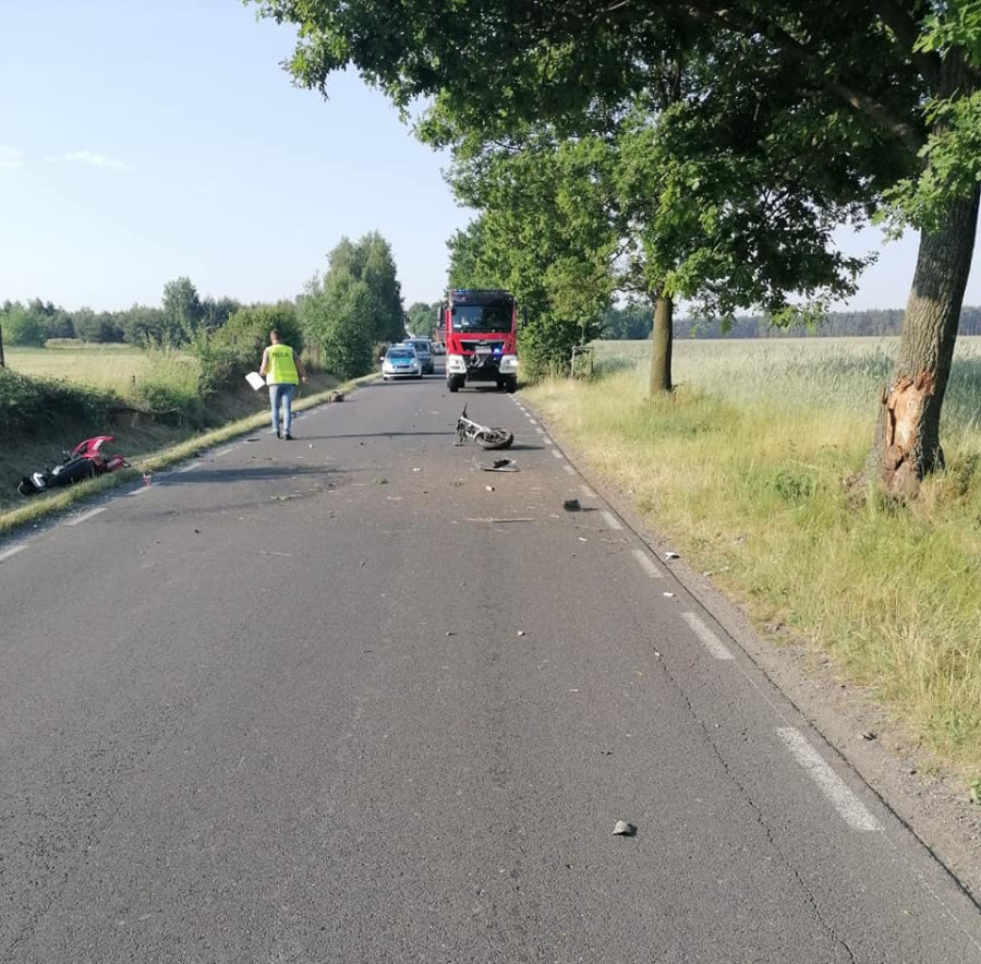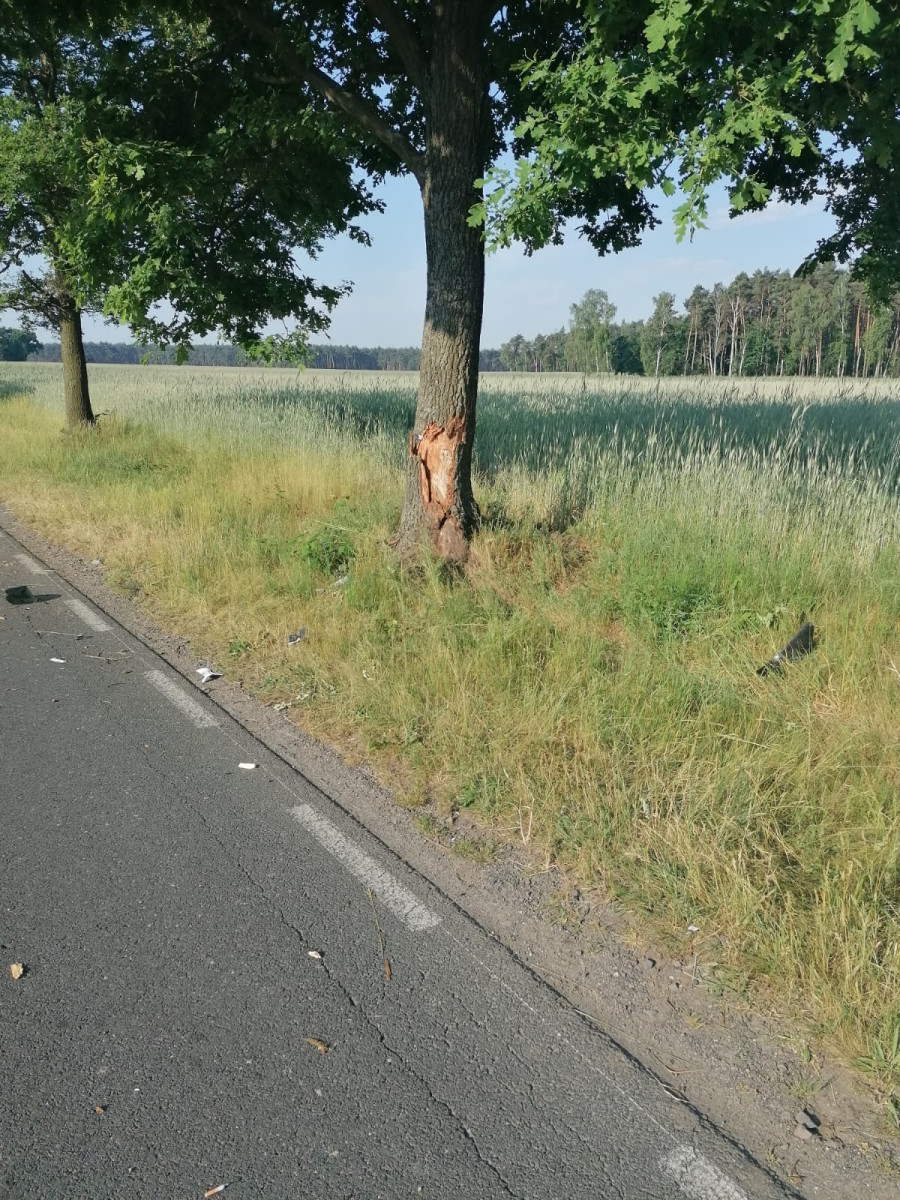 Mężczyzna, kierując motocyklem z nieustalonych przyczyn zjechał na pobocze drogi, gdzie uderzył w drzewo.