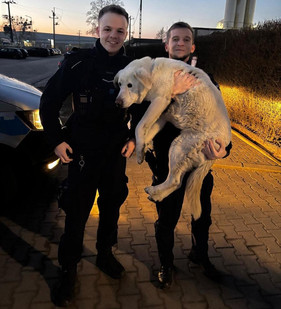 Funkcjonariusze podali mu wodę i ogrzali, ponieważ zwierzę było wyraźnie zmęczone, zziębnięte i kulało. Pies bez oporu wszedł do radiowozu, co świadczyło, że czuje się bezpiecznie w obecności ludzi i potrzebuje pomocy