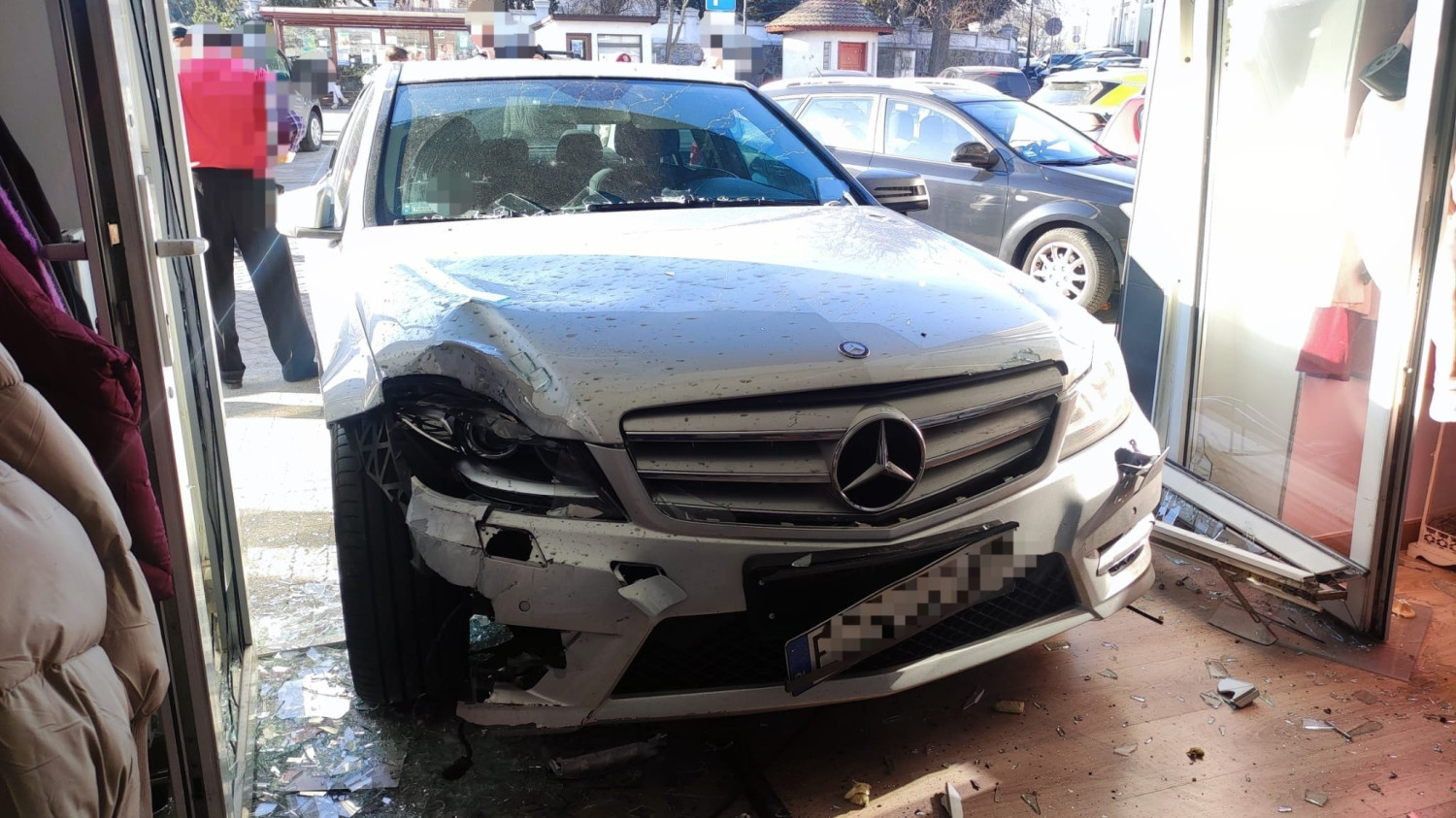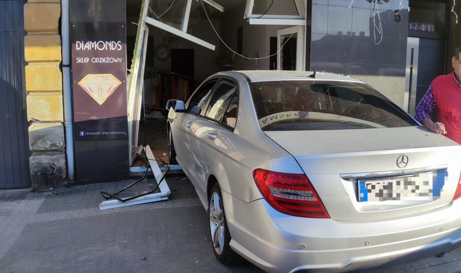 Kierująca Mercedesem wjechała w witrynę sklepu odzieżowego przy ulicy Stary Rynek w Witkowie i zatrzymała się wewnątrz lokalu.