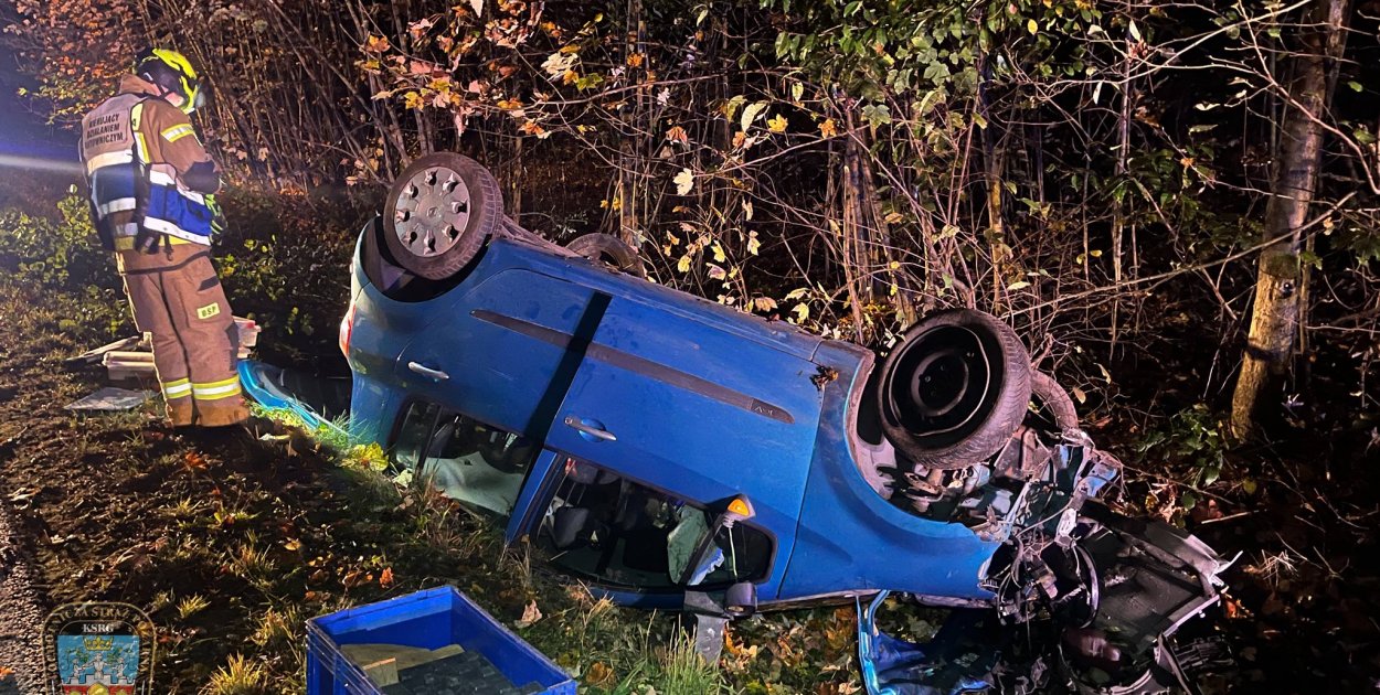 Na miejsce skierowano trzy zastępy straży pożarnej: JRG Września, OSP Pyzdry i OSP Lisewo. Po przybyciu służb ratunkowych zastano pojazd leżący na dachu w przydrożnym rowie.