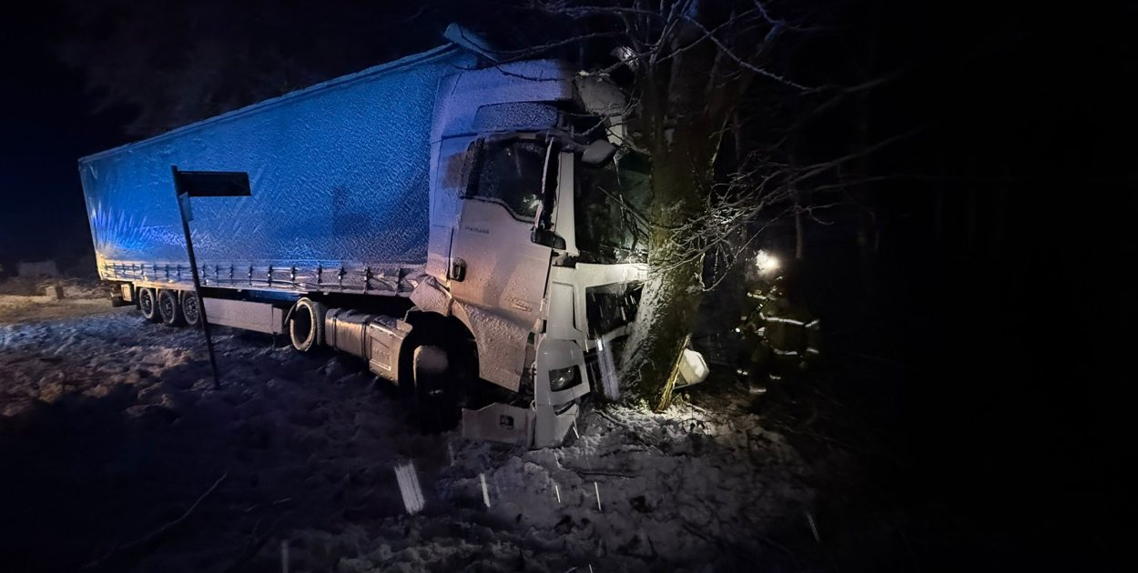 Po dotarciu ratowników na miejsce zdarzenia zastano pojazd ciężarowy, który uderzył w przydrożne drzewo. Siła uderzenia spowodowała całkowite zablokowanie drogi gminnej, co wymagało jej czasowego wyłączenia z ruchu.