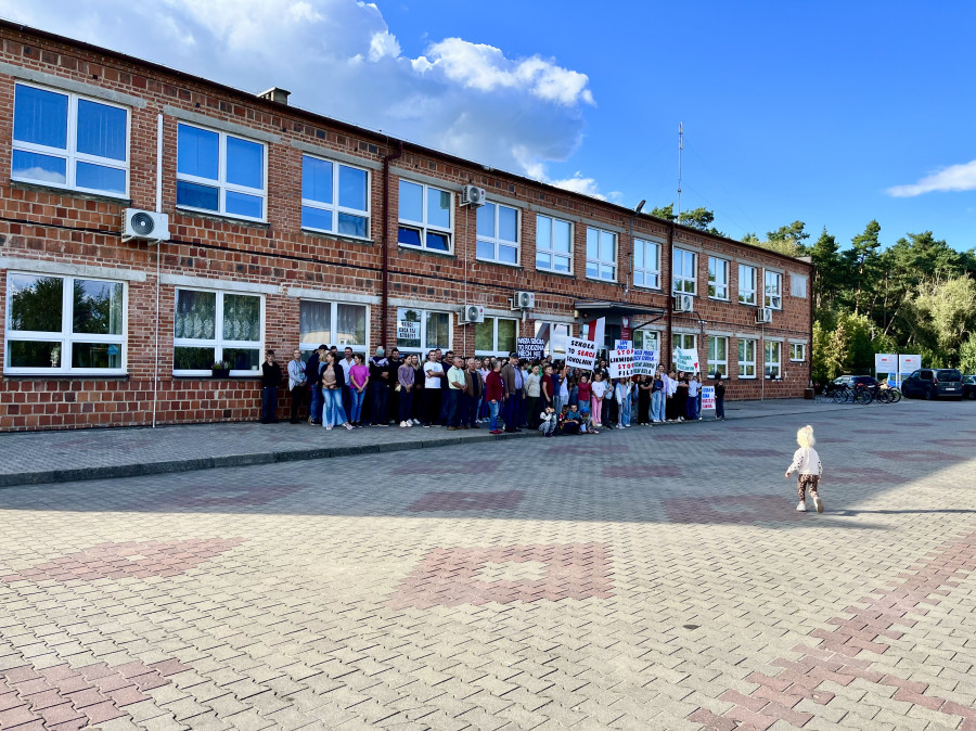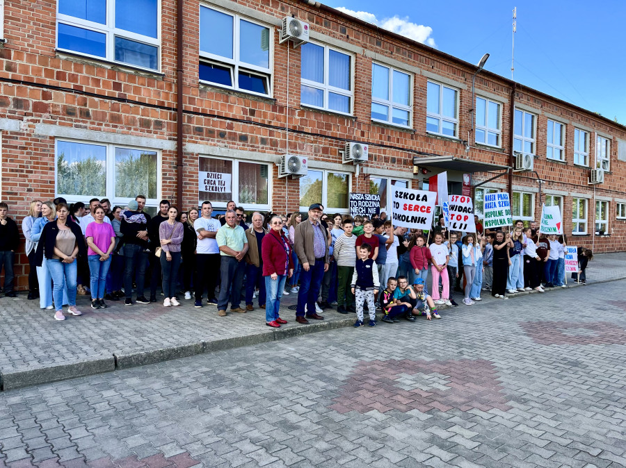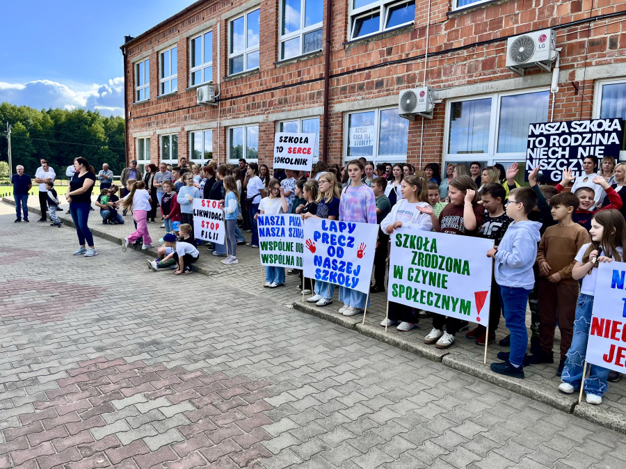 Władza jednak nie słucha głosu rodziców i mieszkańców wsi, dla których szkoła jest czymś więcej niż tylko miejscem, gdzie uczą się dzieci. To szkoła Pomnik, budowana w dziewięćdziesiątych latach z inicjatywy i rękoma sokolnickiej społeczności. Solidaryzując się z jej twórcami, społeczność szkolna - uczniowie, rodzice, pracownicy oraz mieszkańcy Sokolnik, Gałęzewic, Szamarzewa, Żydowa zebrali się licznie we wtorkowe popołudnie, 23 września, na szkolnym dziedzińcu aby zamanifestować przeciwko wizji reorganizacji miejscowej szkoły.