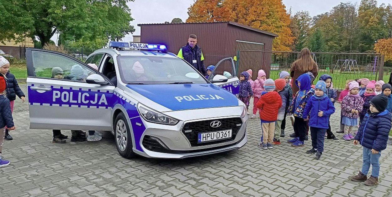 Wrzesińscy policjanci odwiedzili podopiecznych Przedszkola Jarzębinka w Kołaczkowie. Już na samym wstępie mundurowi dzieciom obiecali kilka niespodzianek.